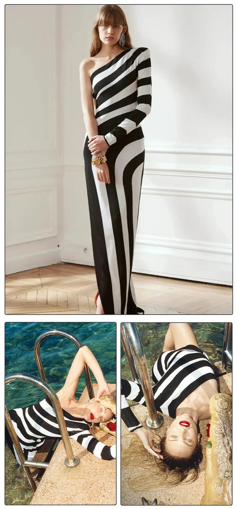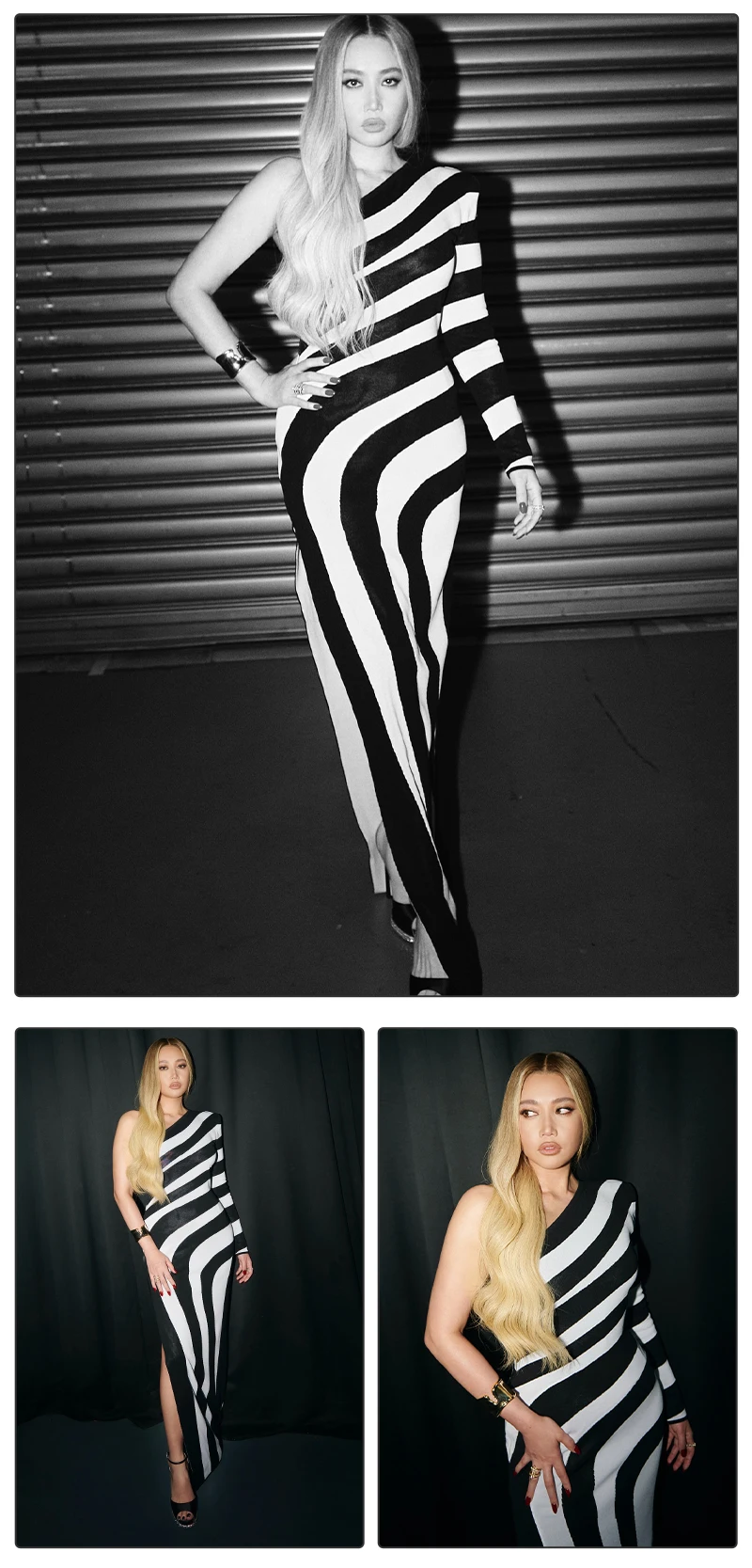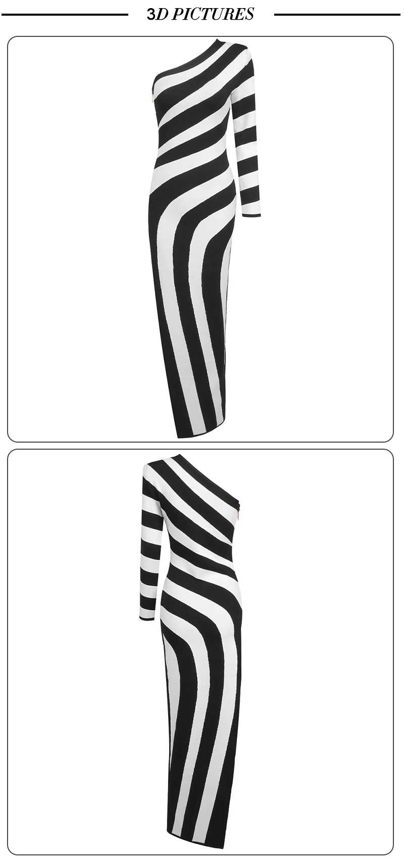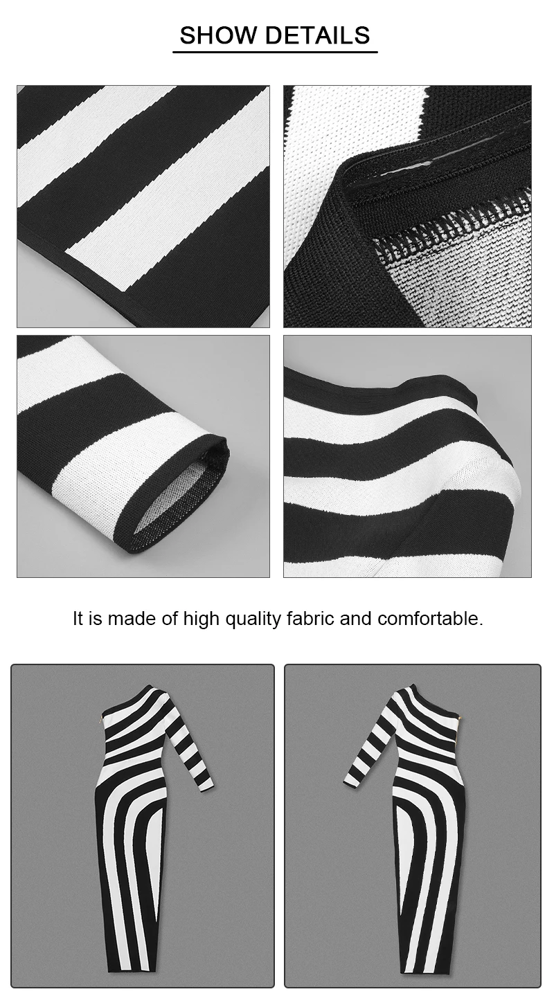 VC Women Sexy One Shoulder Striped High Split Jacquard Maxi Bodycon Bandage Long Dress Celebrity Evening Party Gown